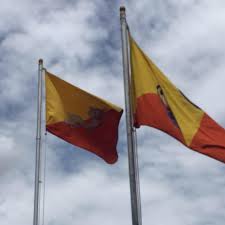 The basis for the flag is the yellow/orange division of the national flag with the BSA emblem placed over the division. The placement of the emblem is not certain; one flag have it in the center while another copy has it towards the hoist.
