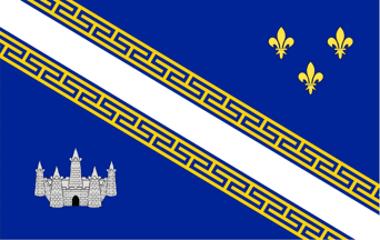 The flag of Château-Thierry (photo, 2019; photo, 2025) was selected in 2019 after a competition organized with the help of the SFV (Société française de vexillologie).
