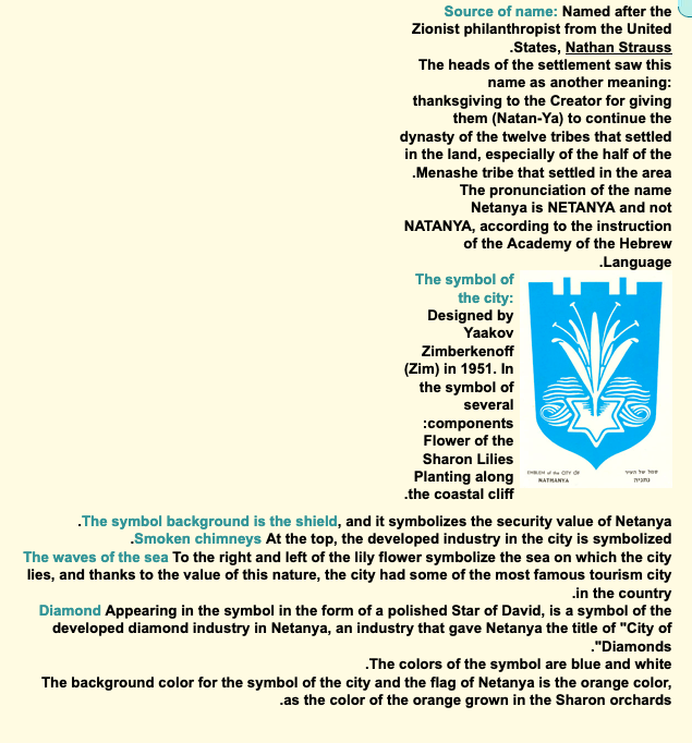 • Information about name and arms (netanya.muni.il [former version], English translation)