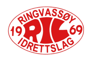 The flags of Ringvassøy IL (Ringvassøy Idrettslag) from Hansnes on Ringvassøya Island in Karlsøy Municipality are red or white with the logo centered in the opposite color.