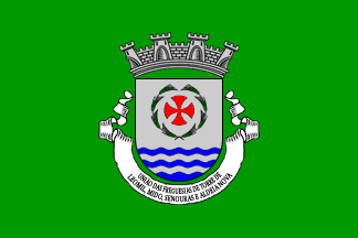 It is a typical Portuguese communal flag, with the coat of arms centred on a plain green field.