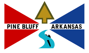 "[...] Aldermen will also consider adopting a new flag for the city, replacing a dated logo that is expensive to purchase, according to Greg Gustek, executive director of the city's Image Campaign committee. The current flag, which flies now above Saracen Landing along Lake Saracen and hangs inside the City Council Chambers, has red and blue triangles framing a blue river and a green pine tree. The new design display an anchor and refers to Pine Bluff as the "Harbor City, the anchor of Southeast Arkansas. [...]