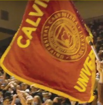 white letters--"Calvin" appearing above the smaller "UNIVERSITY"--toward the