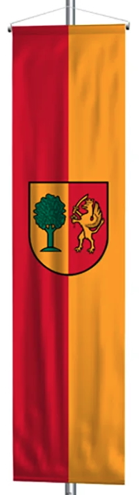 In a shield divided into gold and red, in the golden field a green tree laden with leaves, in the red