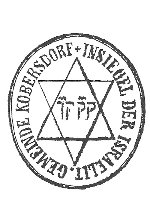"Seal of the Israelite Community Kobersdorf". In the center the Hebrew letters "KK KD"