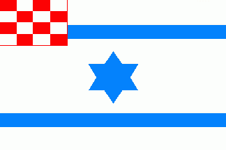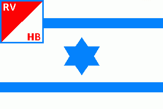 The flag was white with a centred blue 6-point star between two blue horizontal stripes. The canton had a blue bordure and was parted per bend sinister of red and white with white inscription "RV" on red part on upper hoist corner and red inscription "HB" on lower fly corner (of canton).