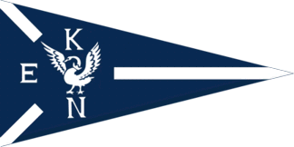On their centre is the swan from the city arms in white, flanked by white initials "E"(hoist), "K"(top) and "N"(fly).