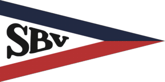 It is a white pennant with broad stripes, black alongside the top and red alongside the bottom. Between both are black serifed converging initials "SBV".