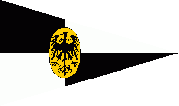 The burgee (pennant) was off-centred quartered of black and white. On the common point of all quarters was a black eagle on a golden oval.