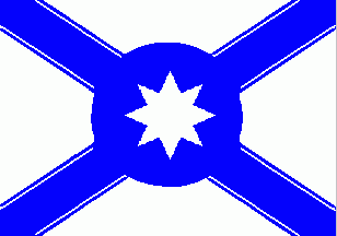 The flag was white parted by a cotised blue saltire with white 8-point star with broad blue fimbriation on centre.