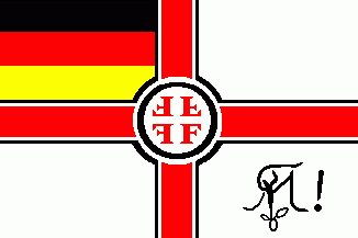 The upper hoist quarter was a black-red-yellow tricolour. The colours in canton are those of the German athletics movement. On lower fly was the black circle of the fraternity.