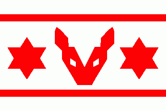 The white flag was divided by two narrow, green, horizontal stripes. In the centre between the stripes was a green 6-point star.