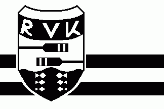above two black oars in fess ordered per pale with different directions, above on a black fess embowed a white inscription "RVK".