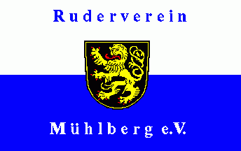 "Ruderverein" on white stripe and "Mühlberg e.V." on blue stripe.