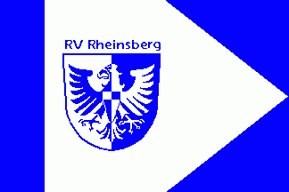 Shifted to hoist on the white part are th city arms in blue and white (eagle with quartered inescutcheon on breast) under a blue inscription "RV RHeinsberg".
