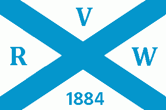 The white flag had a blue canton, charged with a lion rampant barry of eight of white and red, crowned and armed golden and holding a sword Argent by his right forepaw, behind the canton in fly was a black inscription "W" (above) and "RV" (below), parted by a thin horizontal stripes. In thelower half were two red horizontal stripes.