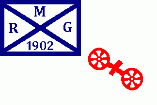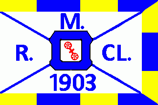 "M"(top), "R"(hoist), "C"(fly) and "1902"(bottom). On lower fly were the city arms in counterchanged tinctures without shield.