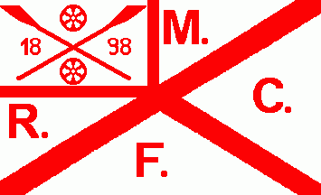 It was a white flag parted by a red saltire with red inscriptions "M."(top), "R."(hoist), "C."(fly) and "F."(bottom).