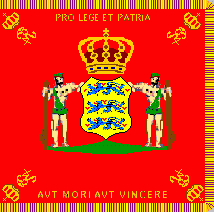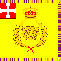 On centre is also a golden inscription flanking the wreath "GARDES" (hoist) "DANOISES" (fly) (= Danish Guards).