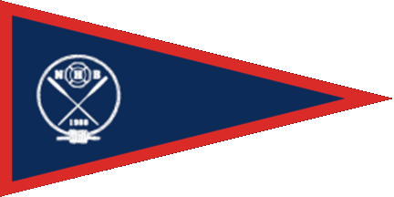 The pennant is blue fimbriated red. Shifted to hoist in a white logo, rope circle, tied beneath by a reef knot, surrounding two oars in saltire, above on a life belt is a white inscription "NHB", below a number "1958". Nordhammer is located on a peninsula flanking the Isefjord in the East.