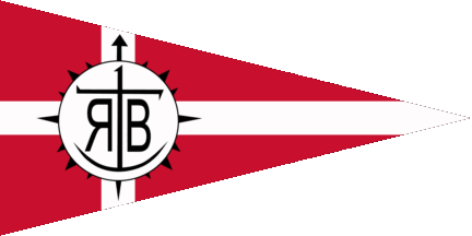 The pennant is red, at hoist is a blue inscription "RB", surrounded by a white rope in circle with a reef knot at ist bottom. Reersø is a town located on the namesake peninsula in the Great Belt.
