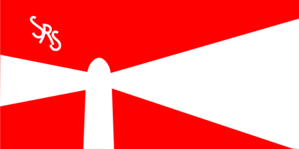 There is a pennant (see left image above) and a flag (see right image above). Both have the same pattern. They are red with a white lighthouse with rays on either side and a stylised white inscription "SRS" in canton. Rødvig is located in southeast Zealand and belongs to Stevns Kommune.