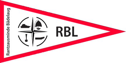 The pennant is white fimbriated red. At hoist is a black logo displaying a 4-point Star (compass rose) flanked by a mtor baot, a sailing boat, a buoy and a rudder, all in an interrupted annulet. Another flag display the name in black alongside the hoist and a black inscription "RBL" on fly. Rantzausminde is located on Funen and belongs to Svendborg Kommune.