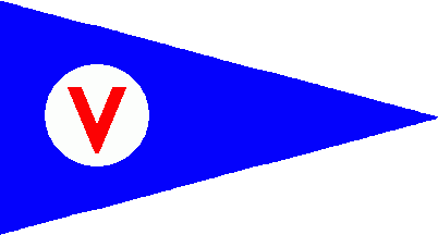 The pennant is blue with a red letter "V" on a white disc shifted to hoist.