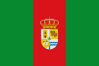 Description: Divided into three equal vertical stripes, the side stripes green and the central stripe red. In the center, the municipal coat of arms.