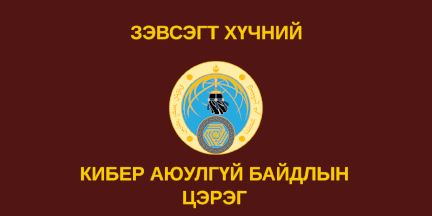 Flag of Cyber Security Force is brown and displays emblem of the Cyber Security Force and inscription in Mongolian says "Cyber security Force of the Armed Forces"