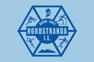 The flag of Nordstranda IL (Nordstranda Idrettslag) from Løpsmarka in Bodø is light blue with the logo in the center.