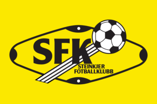 The flags of Steinkjer FK (Steinkjer Fotballklubb) from Steinkjer are yellow with the logo centered.