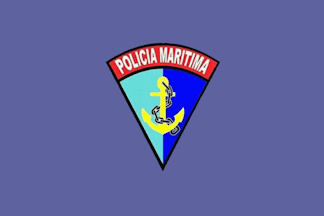 The flag of the Maritime Police (Polícia Maritima) is purplish blue with its badge placed in the center of the flag: