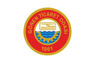 The flag of the Gönen Chamber of Commerce is white with the logo centered.