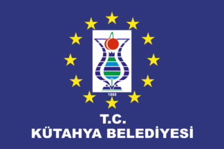 The flag of Kütahya (photo, photo, photo) is blue with the municipality's emblem. "Belediyesi" means "Municipality".