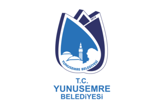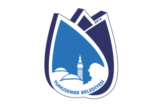 The flag of Yunusemre (photo) is white with the municipality's emblem in the middle. "Belediyesi" means "Municipality".
