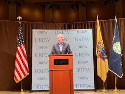 Institutional flag is blue, with seal, "Drew" on top, and "university" on
