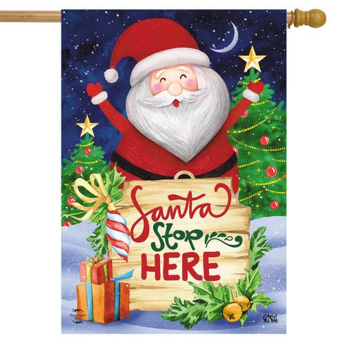 ![]() BW1911 Santa Stop Here Burlap Garden Size $14.00 House Size $25.00 Appliqued |
