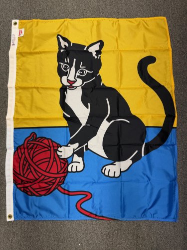 #726 34x44" Curious Cat flag $10 each Dyed flag with grommets 1 available lr260413 |