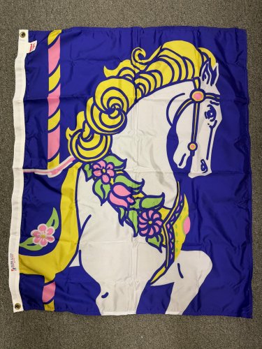 #735 34x44" Carousel flag $10 each Dyed flag with grommets 1 available lr260413 |