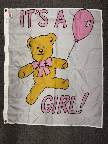 #739 34x44" It's A Girl Balloon flag $10 each Dyed flag with grommets 1 available lr260413 |