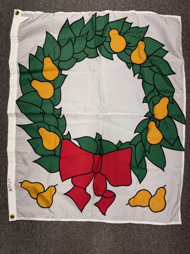 #744 34x44" Wreath flag $10 each Dyed flag with grommets 1 available lr260413 |