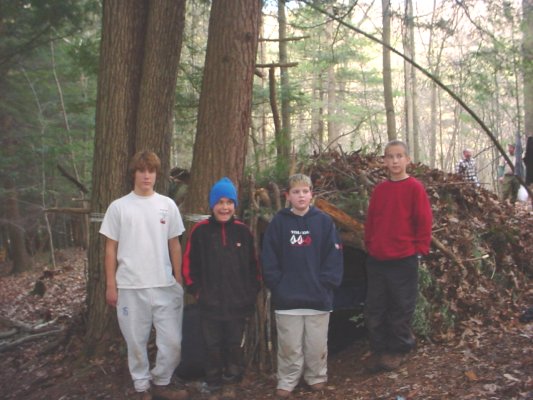 The team of Michael, Keith, Joey, Daniel Y., start of the shelter |