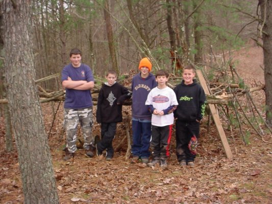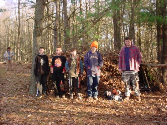 The team of Billy, Jamie, Kyle, Zeek, Adam, start of the shelter |
