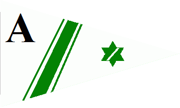 The white pennant was divided by a green, cotized bend sinister A green 6-point star was in the fly end.
