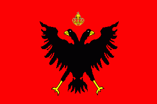 The flag was red charged with a black double-headed eagle armed golden under a golden impending imperial crown.