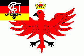 The upper hoist quarter was a black-red-yellow tricolour. The colours in canton are those of the German athletics movement. On lower fly was the black circle of the fraternity.