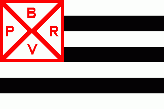 It was a 7-stripes flag parted horizontally by alternating white and black stripes. The white canton had red edges and was parted by a red saltire with red inscriptions as follows: "B" (top), "P" (hoist), "R" (fly) and "V" (bottom). It was established as a free and easy confraternity of private boat owners.