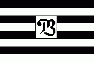 It was an 8-stripes flag parted by alternating horizontal black and white stripes. On centre in white rectangle with black edges was black Gothic initial "B".