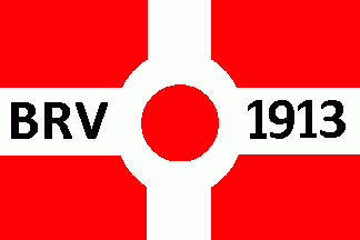 The red flag was parted by a white centred cross, on its centre superimposed by a white disc charged with a smaller red disc. The horizontal white cross bar had a black inscription "BRG" (hoist) and "1913" (fly).